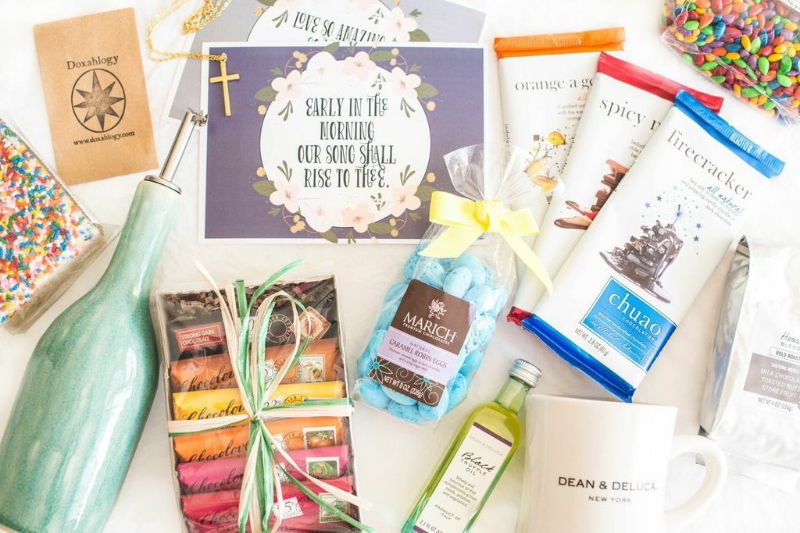 Some of the items in this basket are from Dean & Deluca - a gourmet grocery store in NYC that originated in SoHo (where I could easily double my weight in if given enough time). This place is brimming with epicurean delicacies like fresh pastries, macaroons, pastas, oils, and everything delicious that you can imagine. Other items come from Peppercorn in Boulder, CO- a retail potpourri on Pearl Street focusing on kitchen, bath and home accessories (I’ve spent hours there on multiple occasions). I threw in my hands-down favorite chocolate I've ever eaten from Chuao Chocolatiere in San Diego, CA, and some beautiful Hymn cards from Magnolia Market. There's also a custom made cross necklace from my sweet friend at Doxahlogy here in Nashville.